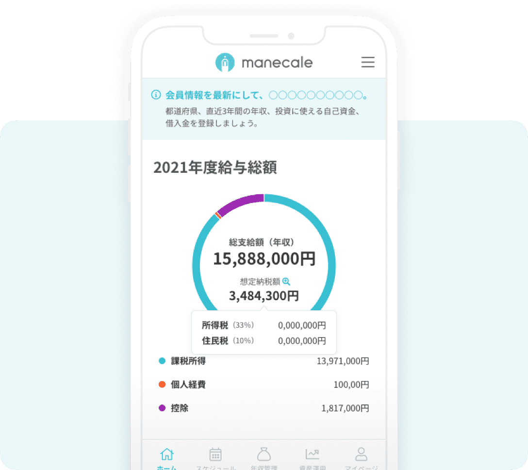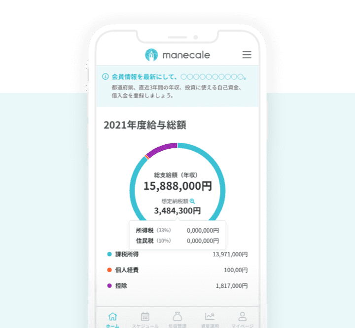 マネカレが収入額から計算し、推定税額を自動で通知します!